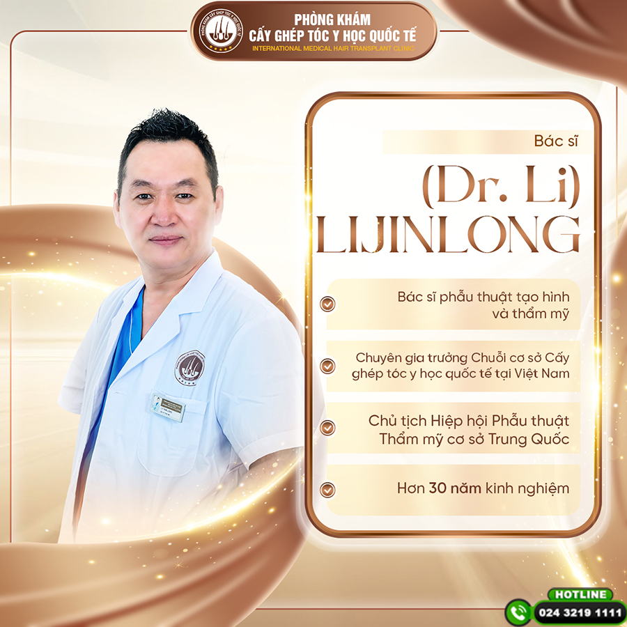 Dr. Li là chuyên gia phẫu thuật tạo hình và thẩm mỹ hàng đầu châu Á. Trải qua thời gian dài tu nghiệp tại Nhật Bản và Hàn Quốc, ông sở hữu khả năng thiết kế đường chân tóc tinh tế, phù hợp đặc trưng gương mặt người Á Đông. Đề cao sự chính xác, Dr. Li luôn chú trọng vào công đoạn đo vẽ, tính toán góc nghiêng và mật độ từng sợi, nhằm bảo đảm mái tóc sau khi mọc lại đạt độ hài hòa tối đa.