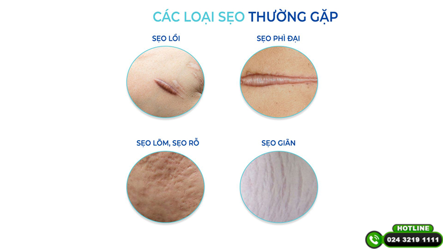 – Sẹo phẳng : là loại sẹo phổ biến nhất nhất, chiếm khoảng 90% các loại sẹo. Khi da bị tổn thương, cơ thể sẽ sản sinh ra collagen để thay thế cho mô da bị tổn thương. Tuy nhiên, đôi khi quá trình sản sinh collagen này không đồng đều, dẫn đến hình thành sẹo phẳng. Sẹo này thường không gây ảnh hưởng nhiều đến vẻ ngoài của da.
