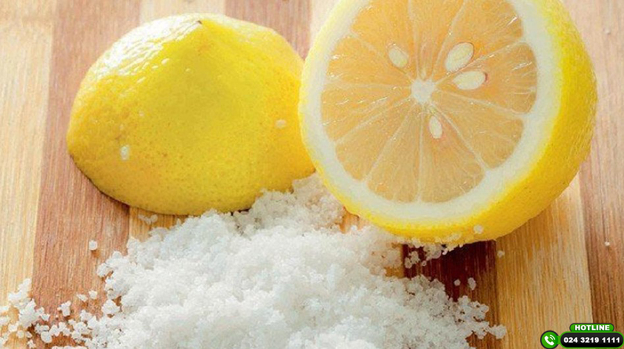 – Vắt lấy nước cốt một quả chanh, trộn với 2 thìa muối hạt.