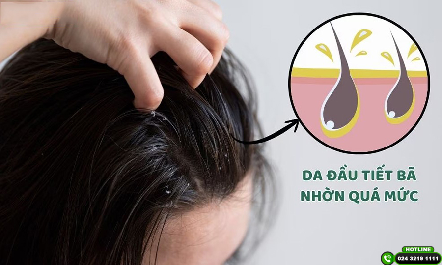 Da đầu tiết dầu là cơ chế tự nhiên giúp bảo vệ sợi tóc khỏi khô xơ và gãy rụng. Tuy nhiên, khi tuyến bã nhờn hoạt động quá mức do tác động của di truyền, rối loạn hormone, căng thẳng kéo dài, thời tiết nóng ẩm, chế độ ăn nhiều dầu mỡ hay thói quen chăm sóc tóc sai cách,…. lượng dầu thừa sẽ tích tụ trên da đầu, khiến tóc nhanh bết, nặng và mất độ bồng bềnh tự nhiên.