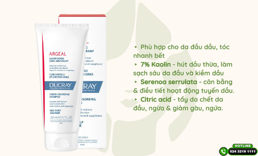 Dòng dầu gội cao cấp đến từ Pháp, chứa kaolin (đất sét trắng) giúp hấp thụ bã nhờn dư thừa mà không làm khô da đầu. Công thức dịu nhẹ, phù hợp cho tóc dầu nhạy cảm hoặc phải gội thường xuyên. Sử dụng đều đặn giúp tóc bồng bềnh, giảm nhờn rõ rệt sau vài tuần.