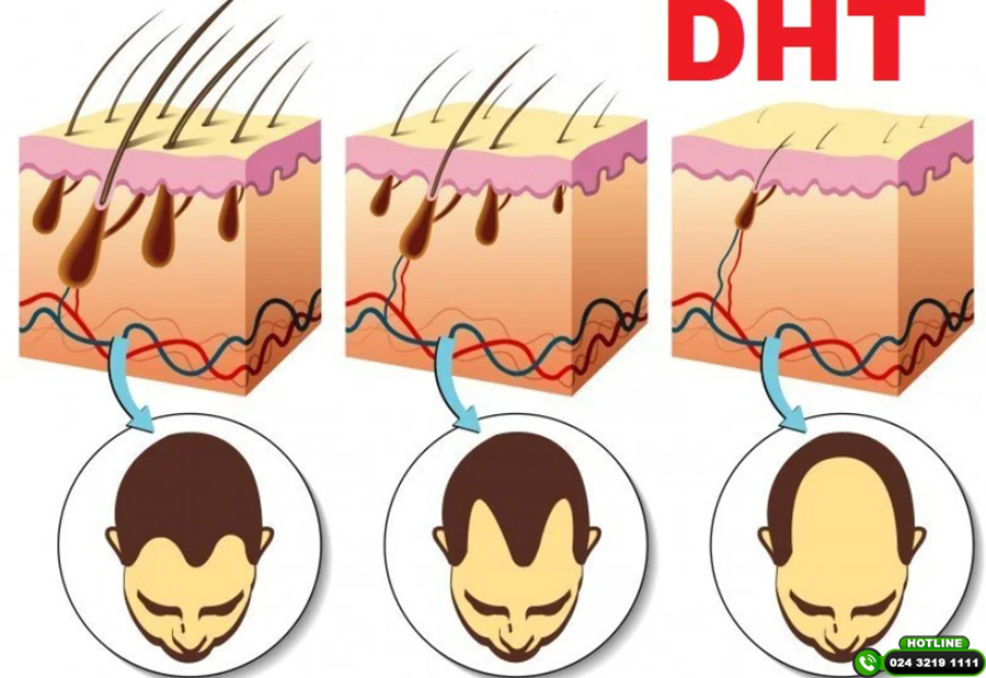 Khi nồng độ hormone testosterone giảm thấp, thì dihydrotestosterone sẽ nhanh chóng tăng cao nhằm bù đắp cho sự suy giảm này. Tuy nhiên, sự sản sinh quá mức Dihydrotestosterone có thể tác động xấu đến quá trình mọc và gây rụng của tóc.
