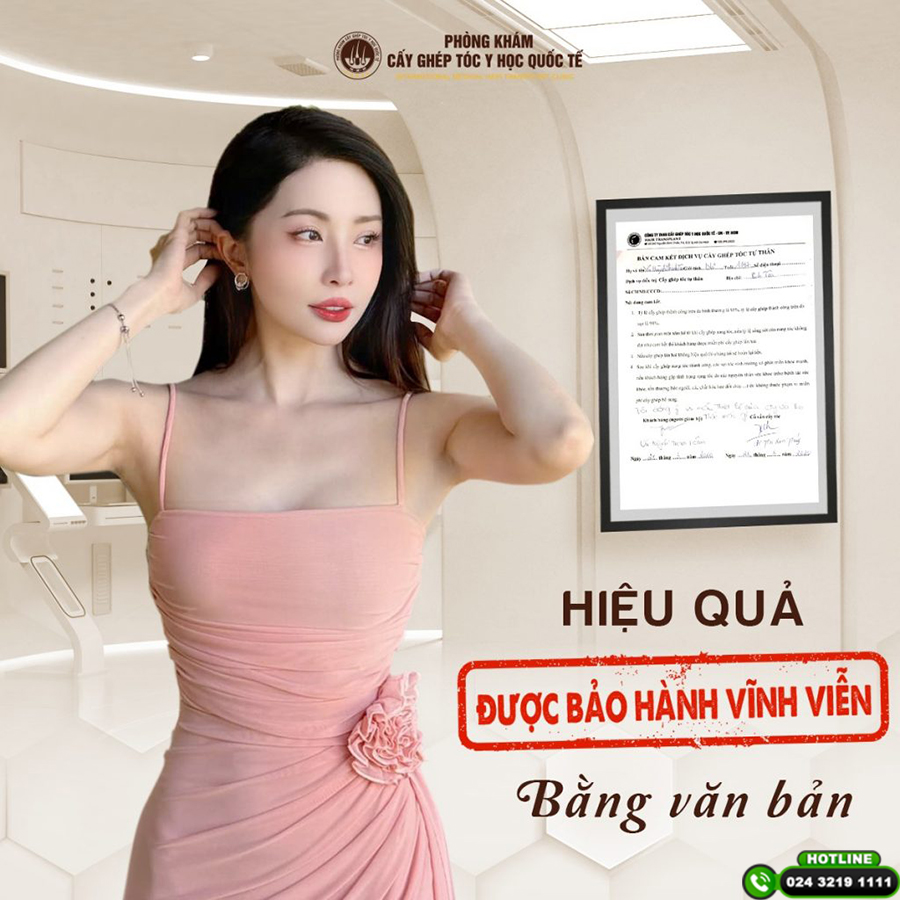 Bên cạnh đó, Viện Cấy tóc Quốc tế cam kết rõ tỷ lệ nang sống và hỗ trợ xử lý nếu kết quả chưa đạt kỳ vọng theo thỏa thuận ban đầu.