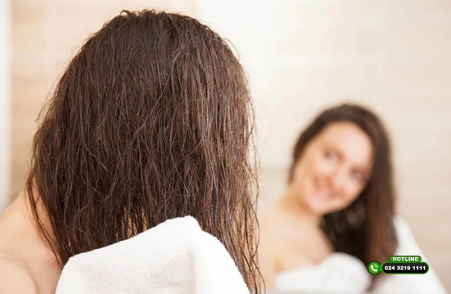 Sau khi gội đầu, bạn không nên sử dụng chế độ sấy nhiệt của máy sấy vì như vậy rất có hại cho tóc, đặc biệt là tóc khô xơ. Nếu có thể, bạn nên sấy bằng chế độ lạnh hoặc lau bằng khăn và để tóc khô tự nhiên.