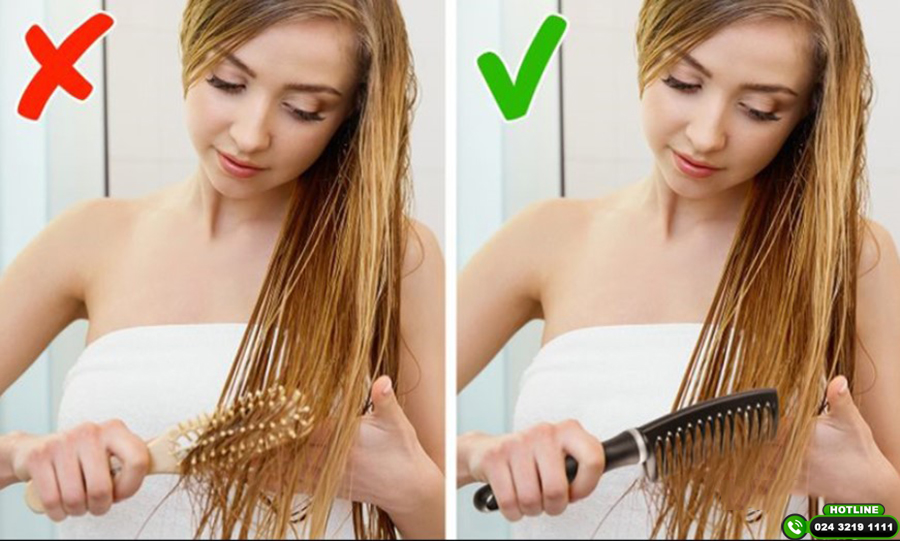 - Dùng lược chải tóc khi gội đầu, dùng khăn chà xát mạnh vào tóc và da đầu sau khi gội để lau tóc.