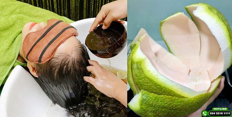 Cách thực hiện: Vỏ bưởi rửa sạch đem đun sôi với 2-3 nhánh sả đập dập trong khoảng 15 – 20 phút. Tắt bếp để nguội, pha loãng và dùng nước đó để gội đầu. Lưu ý không cần gội lại bằng dầu gội và thực hiện 2-3 lần/ tuần.