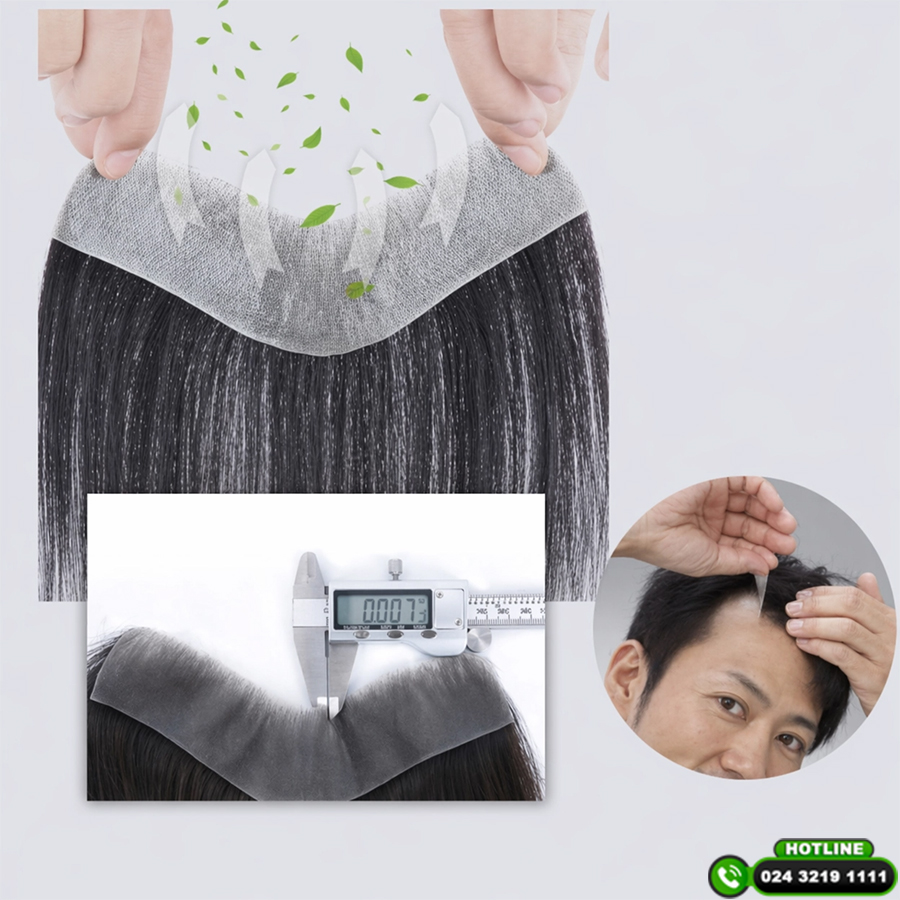 Trên thực tế, miếng dán hói chữ M là một dạng tóc giả được thiết kế riêng cho vùng trán – thái dương, nơi thường xuất hiện tình trạng hói chữ M. Sản phẩm này được cố định lên da đầu bằng lớp keo y tế hoặc băng dính chuyên dụng, giúp tạo đường chân tóc mới một cách nhanh chóng và tự nhiên.