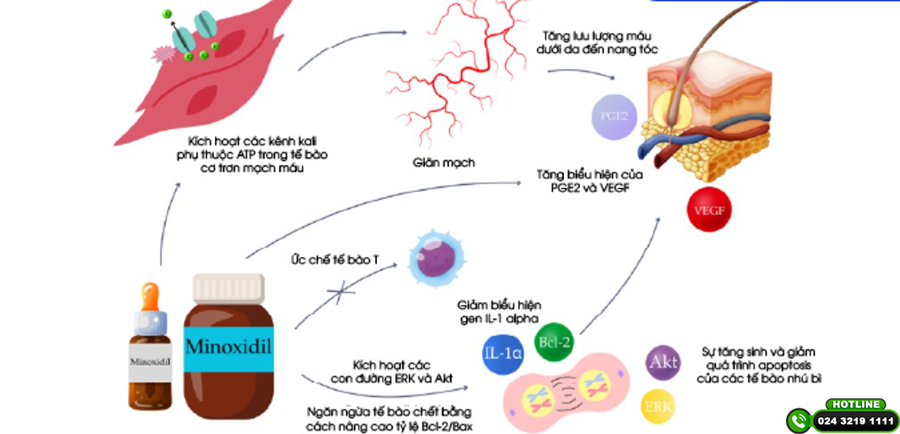 – Giãn mạch máu dưới da đầu, giúp tăng lưu lượng máu nuôi dưỡng nang tóc