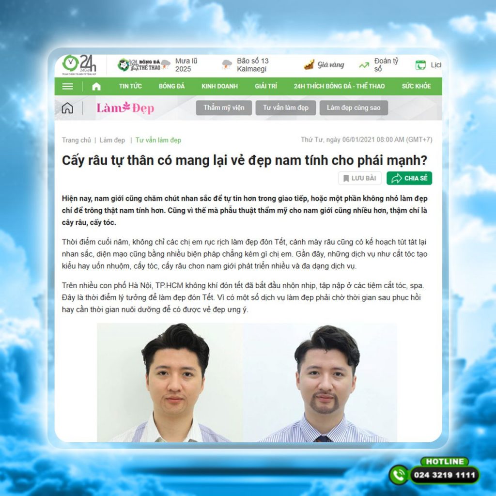2 bài báo giới thiệu chi tiết kỹ thuật cấy râu tự thân – giải pháp giúp phái mạnh sở hữu diện mạo nam tính, cuốn hút. Nội dung tập trung vào: cơ chế hoạt động, quy trình, đối tượng phù hợp, cách chăm sóc tại nhà và đề cập về hiệu quả rõ rệt chỉ sau 3 tháng thực hiện.