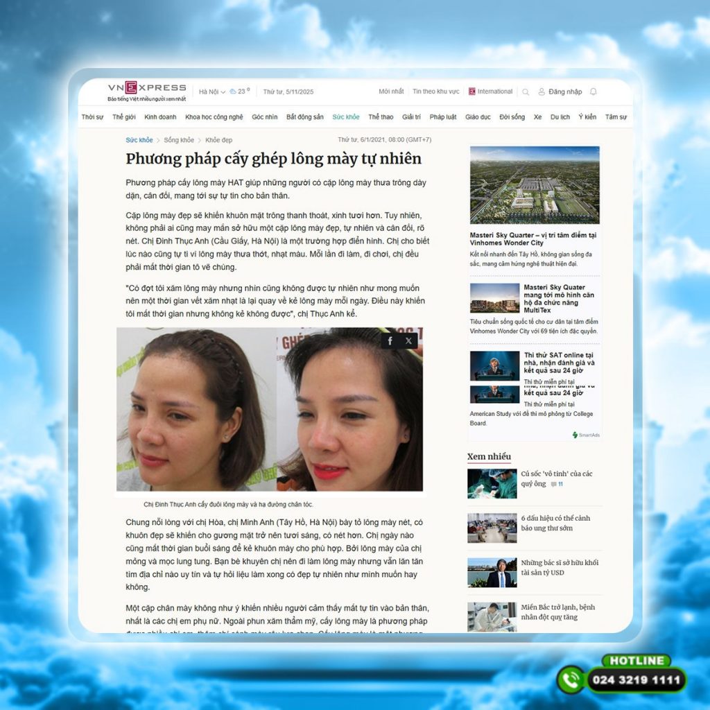 Bài báo nói về trường hợp của chị Thục Anh và Minh Anh – những người từng tự ti vì lông mày thưa, nhạt và mất thời gian trang điểm mỗi ngày. Sau khi lựa chọn cấy lông mày tự thân tại Phòng khám Cấy ghép tóc Y học Quốc tế, cả 2 đã sở hữu hàng mày tự nhiên, hài hòa khuôn mặt. Nội dung cũng nêu rõ quy trình thiết kế dáng mày cá nhân hóa, nguyên lý cấy ghép, thời gian thực hiện và hiệu quả thẩm mỹ thực tế. Đây chính là giải pháp tối ưu khắc phục mọi khuyết điểm trên vùng lông mày.