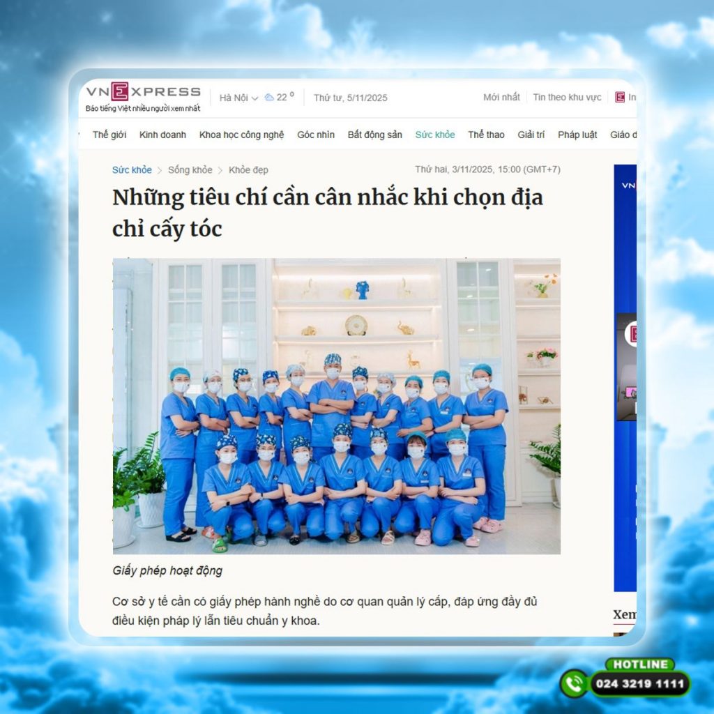 Phòng khám Cấy ghép tóc Y học Quốc tế đang trở thành cái tên được nhắc đến thường xuyên trên hàng loạt mặt báo lớn như: VnExpress, VTV Online, Dân trí, 24h, Dân Việt… Sự đồng hành của truyền thông không chỉ là minh chứng cho vị thế tiên phong và năng lực chuyên môn vượt trội mà còn ghi nhận hành trình gần một thập kỷ đưa công nghệ cấy tóc chuẩn y khoa đến gần hơn với người Việt.
