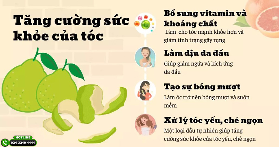 – Kích thích mọc tóc: Tinh dầu trong vỏ bưởi giúp kích thích nang tóc phát triển, hỗ trợ mọc tóc nhanh hơn và dày hơn.
