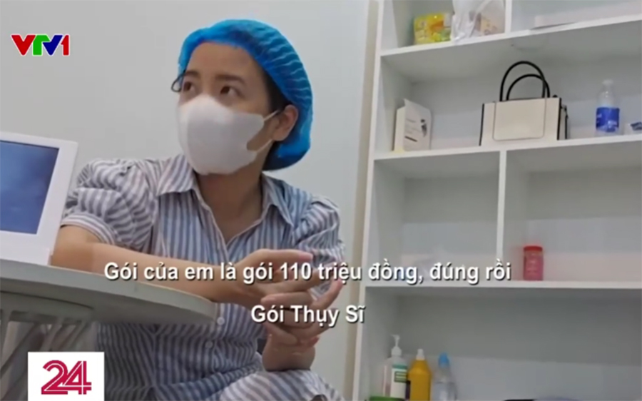 Theo ghi nhận của phóng viên VTV, bên ngoài căn nhà 6 tầng trên phố Đỗ Quang, phường Yên Hòa (Hà Nội) treo biển “Công ty TNHH dịch vụ chăm sóc sắc đẹp”. Nhưng thực tế bên trong, lễ tân lại không nắm rõ spa đang triển khai những hạng mục nào?