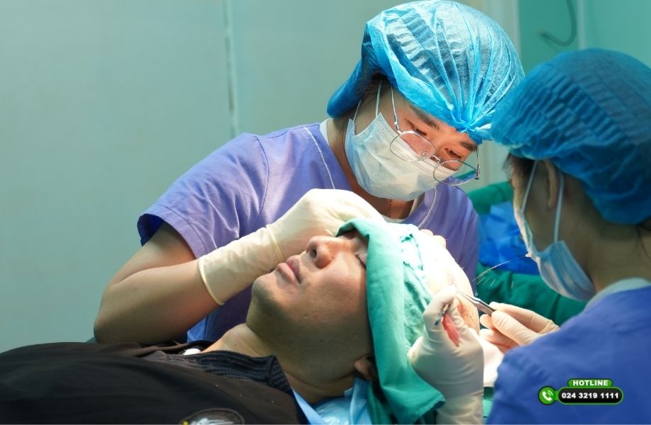 Tiếp đó, bác sĩ thiết kế đường chân tóc cho Hùng Lâm. Điều chỉnh từng chi tiết sao cho hài hòa với góc cạnh khuôn mặt, đúng độ tuổi và vẫn giữ được nét nam tính, tự nhiên. Số lượng nang tóc cần cấy cũng được tính toán kỹ lưỡng. Tránh cấy quá dày gây lãng phí hoặc thiếu hụt khiến kết quả không như mong muốn.